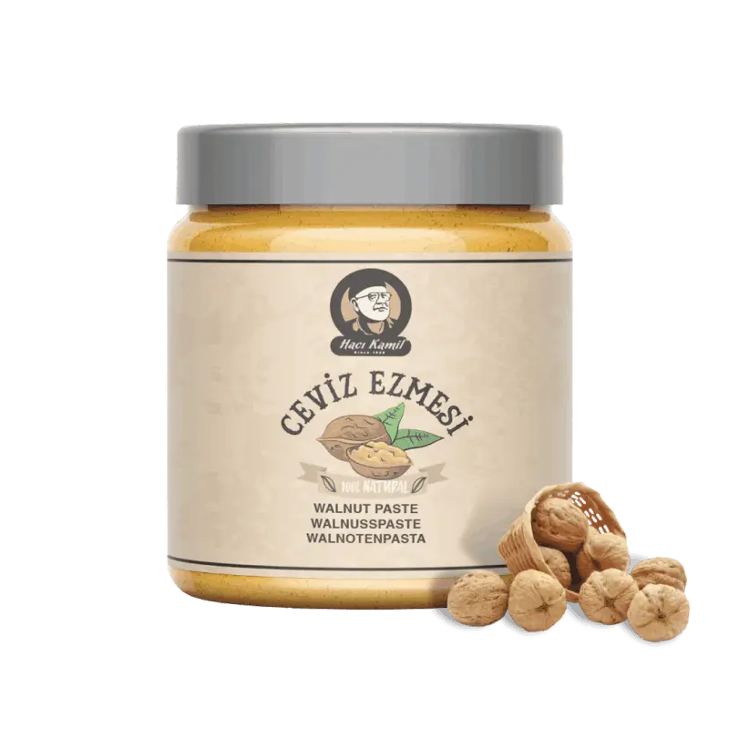 Hacı Kamil Ceviz Ezmesi, taze ve kaliteli cevizlerin öğütülerek hazırlanan bir üründür. Eşsiz ceviz lezzetini sofralarınıza taşıyarak farklı tariflerde kullanabilir ve doğal bir tatlı alternatifi olarak tercih edebilirsiniz.